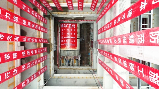 廣花城際項目一工區(qū)廣京區(qū)間右線"廣花?鐵兵2號" 土壓 / 泥水雙模盾構(gòu)機在京溪路站始發(fā)